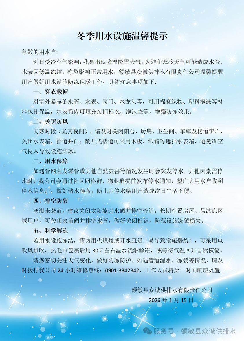 冬季防冻温馨提示