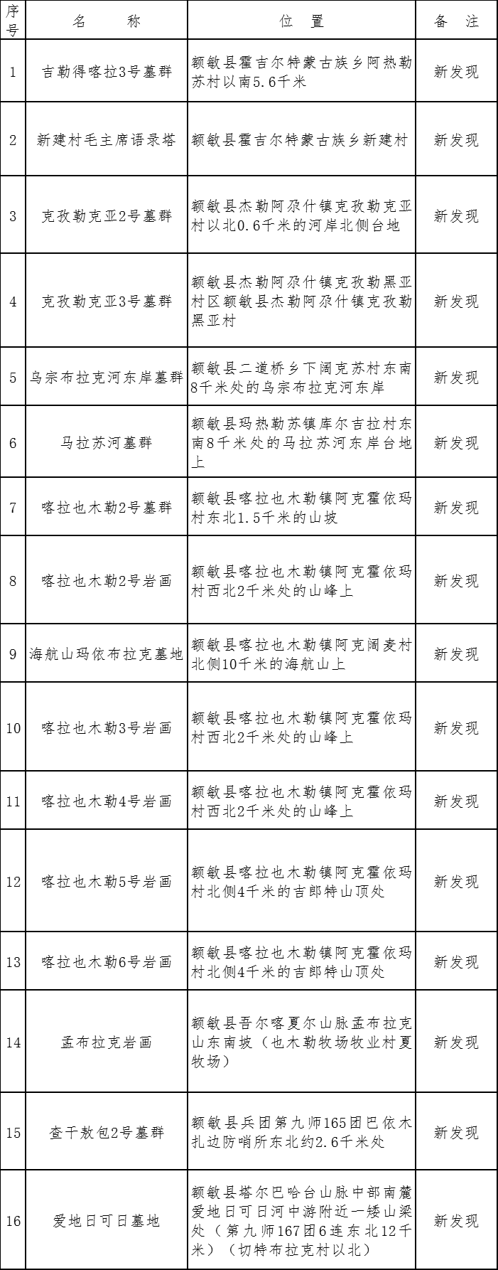 【文物保护工作单位信息】额敏县第四次全国不可移动文物普查新发现未定级不可移动文物名录