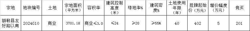 1.本次宗地挂牌以增价方式竞价,宗地[2024G10]每次增价幅度为5万元。