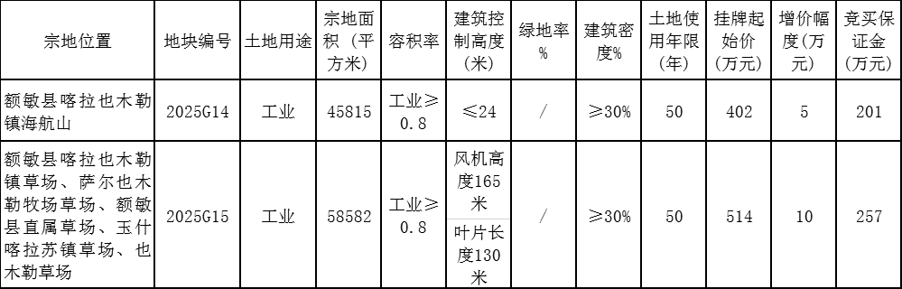 1.本次宗地挂牌以增价方式竞价,宗地[2025G14]每次增价幅度为5万元;[2025G15]每次增价幅度为10万元。