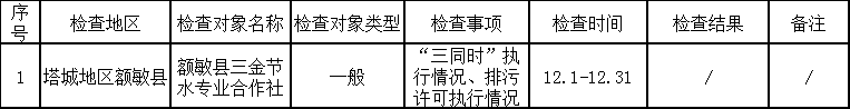 表1:塔城地区生态环境局额敏县分局生态环境执法“双随机、一公开”日常监管事前信息公开表