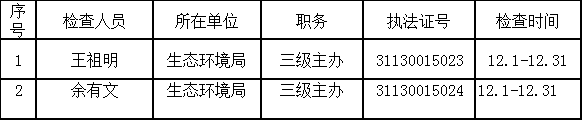 表2:塔城地区生态环境局额敏县分局生态环境执法“双随机、一公开”抽查人员信息公开表