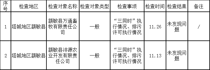 表1:2025年11月塔城地区生态环境局额敏县分局生态环境执法“双随机、一公开”抽查结果信息公开表