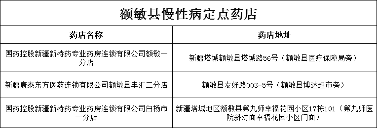 现将2025年12月1日--12月31日额敏县门诊慢性病认定名单公布如下,以下慢性病认定人员可凭社会保障卡或医保电子凭证到定点医疗机构、慢性病药店进行即时购药结算。具体慢性病病种请登录“新疆医保便民服务平台”查询或致电咨询相关信息。