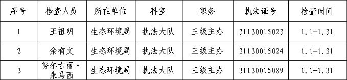 表2:2026年1月塔城地区生态环境局额敏县分局生态环境执法“双随机、一公开”抽查人员信息公开表
