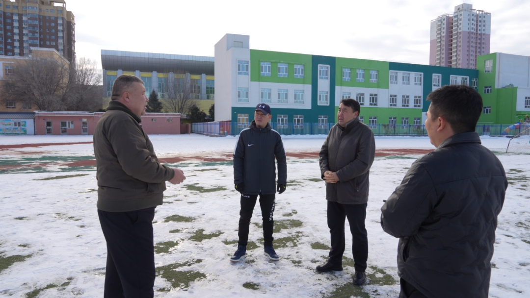 记者在额敏县第二中学足球场上见到赛日克·吐拉别克,他正与额敏县足协赛事筹备组工作人员查看场地,确保即将启动的冰雪季雪地足球赛事顺利举办。