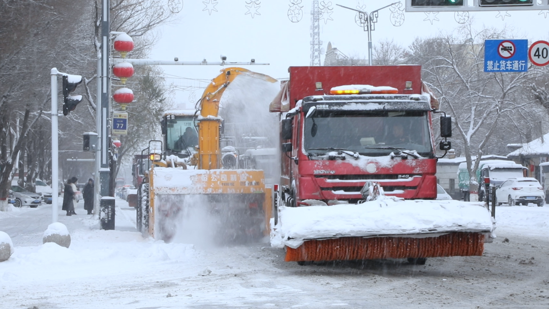 新疆绿融家乡城市运营服务有限公司清运组组长哈德尔江•阿布都艾尼说:“对此次强降雪天气,我公司出动道路清扫机、扬雪机、洒布机等50多辆设备,190余人。我们也是加班加点对城区道路清扫,确保主次干道畅通,保障居民正常出行。”