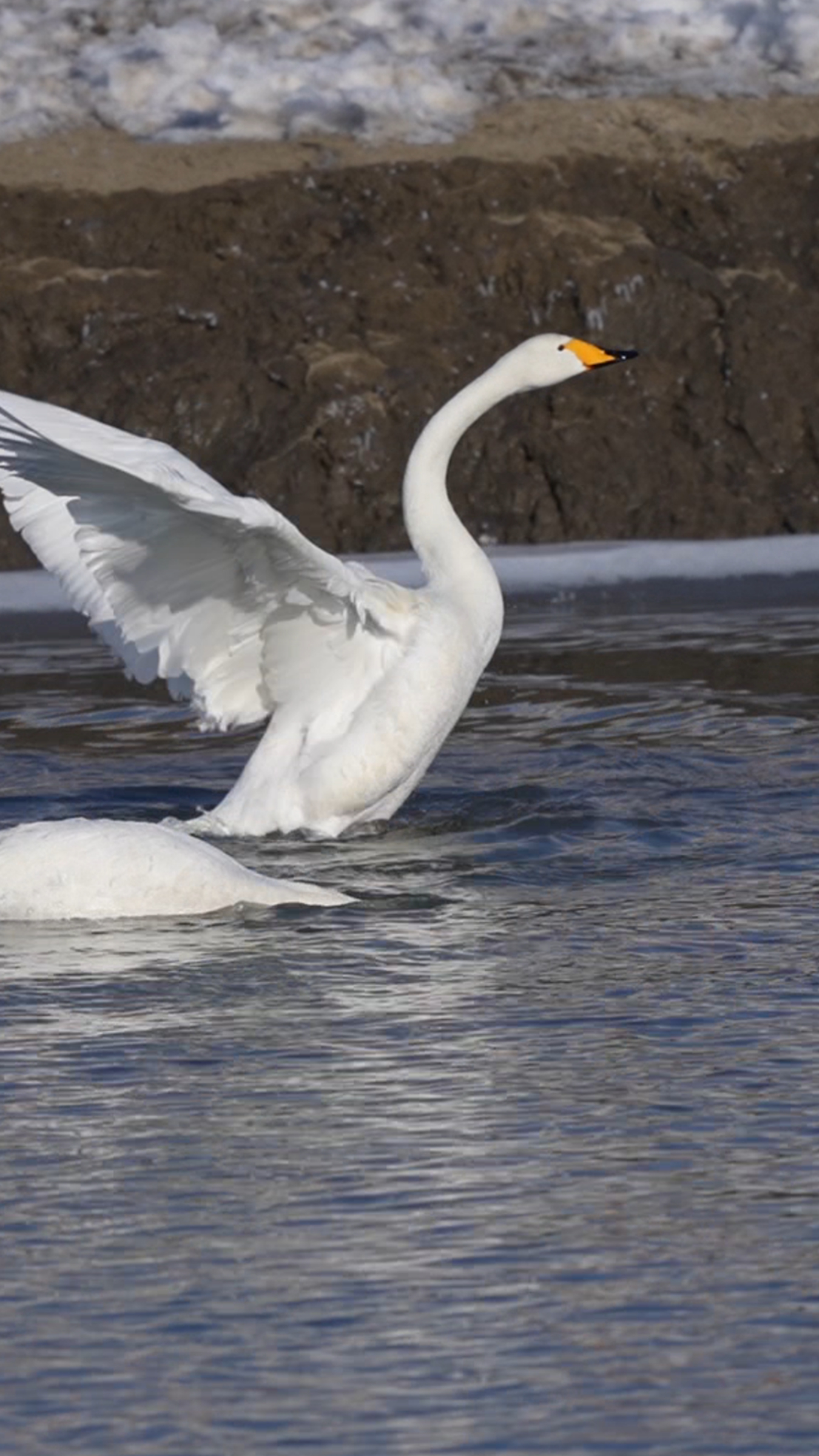 数据显示,2024年,天鹅湖的天鹅数量已经增加到156只,今年很有可能突破300只。这份成果也利益于志愿者的保护与奉献。冬季,当地河道仅有少数地方不被冰雪覆盖,觅食成了天鹅越冬障碍。志愿者自发投喂,为天鹅的生存提供了有力保障。