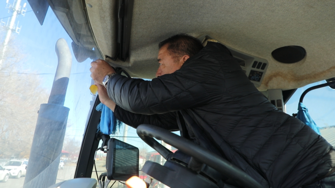 额敏县种植户刘伟说:“我有五六台机器,检修了三四天了,现在全部检修完毕,随时可以下地,我们农户心里也是非常的踏实、安心。”