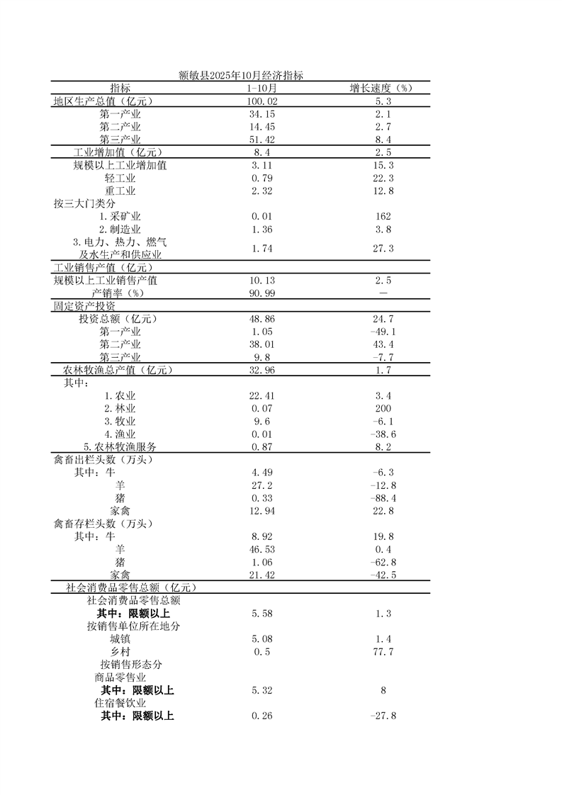 【统计月报】额敏县2025年10月主要经济指标(提供下载)