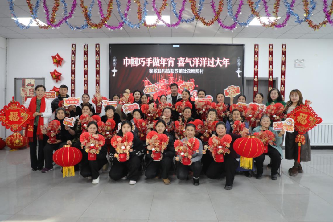 额敏县妇联在玛热勒苏镇吐孜哈那村开展做年宵花迎新春主题手工活动,县妇联工作人员将提前准备好的年宵花材料,发给大家,并逐一讲解制作步骤和搭配技巧。参与群众,按照自己的想法,将喜庆的材料与吉祥挂件组合成型。欢声笑语中,一个个寓意吉祥的年宵花福桶次第成型,喜气的氛围充满。