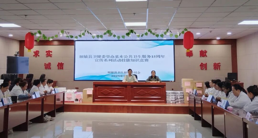 为庆祝基本公共卫生服务开展15周年,进一步夯实基层医疗卫生人员专业能力,以赛促学、以赛促练,9月24日,额敏县卫健委举办基本公共卫生服务技能知识竞赛。本次竞赛不仅是对15年来公共卫生服务成果的阶段性回顾,更是对基层服务队伍专业素养的集中检验,为后续服务提质增效注入强劲动力。本次竞赛由额敏县卫生健康委员会主办,全县各基层医疗卫生机构参赛队员共40余人参加。