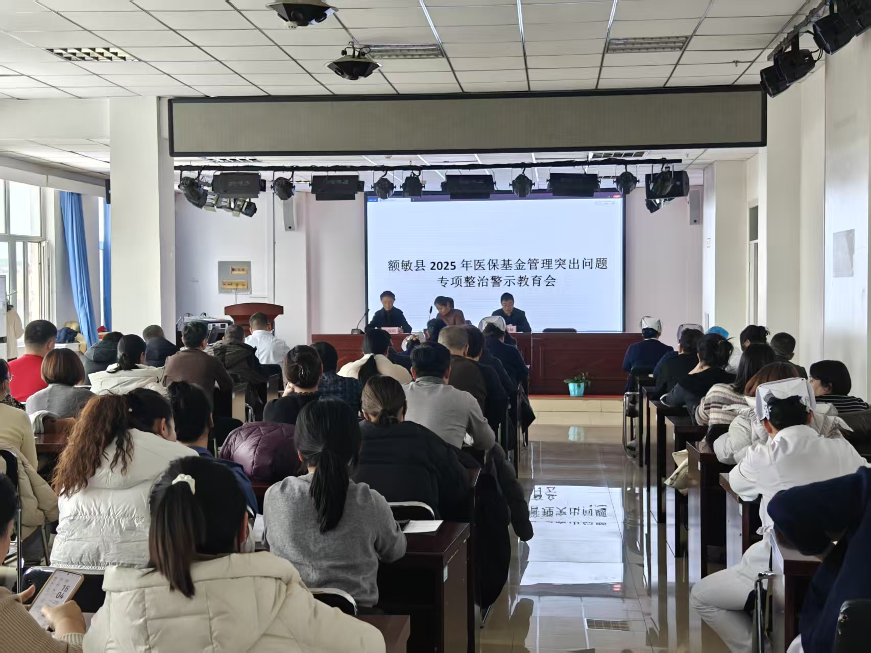 为深入贯彻落实医保基金监管相关工作要求,切实守护好人民群众的“看病钱”“救命钱”,近日,医保局组织召开医保领域警示教育治理大会。政府副县长扎吾列丽出席会议,医保局党组书记唐贵林主持会议,全体干部职工、定点医药机构代表等参加会议。